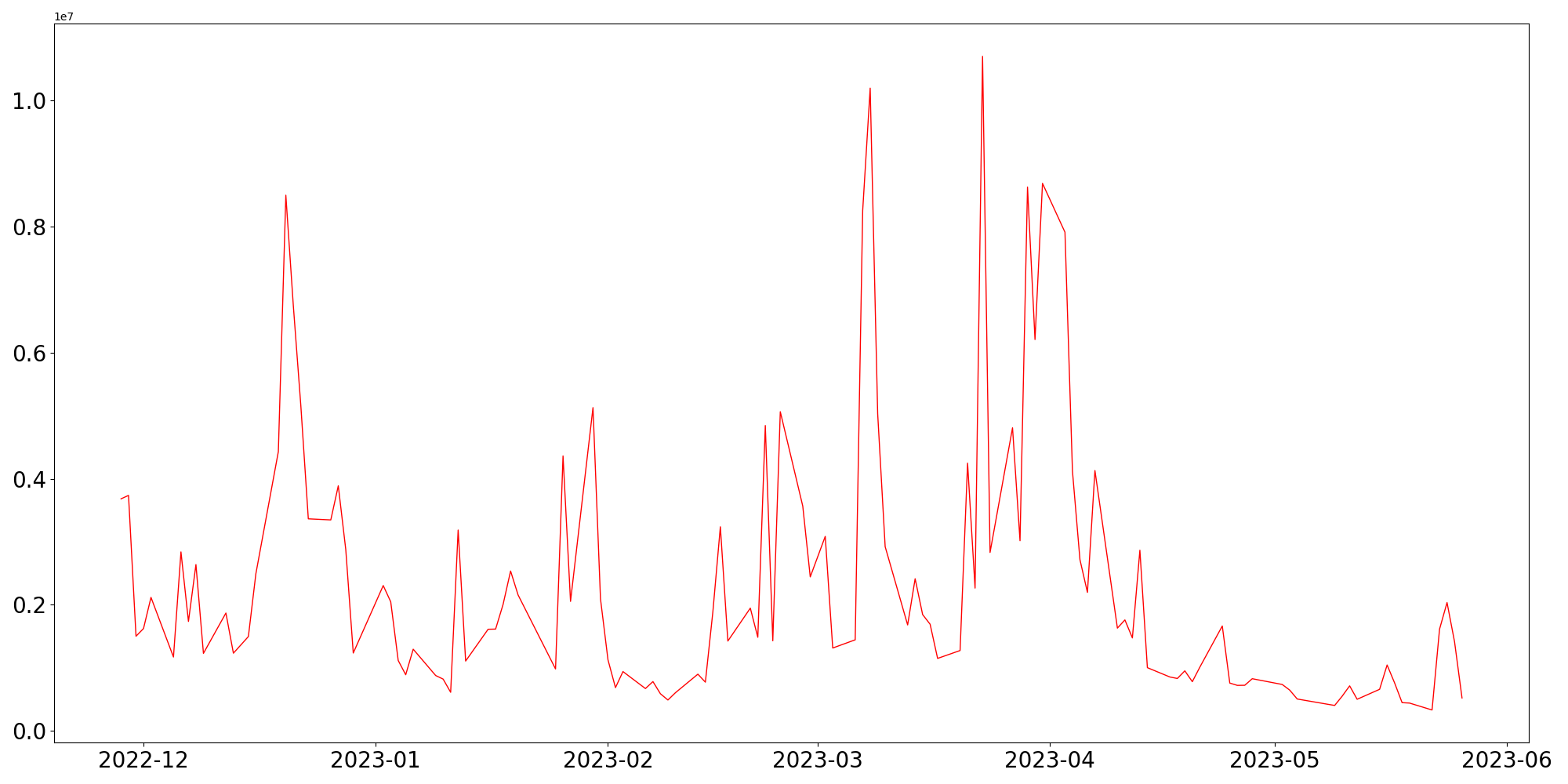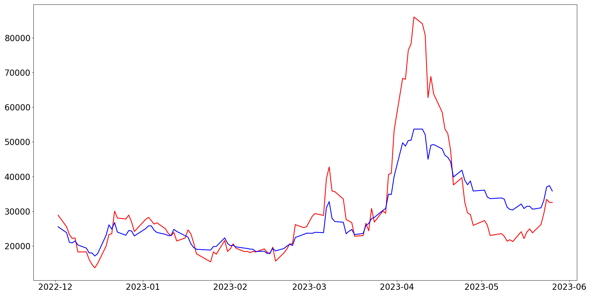 [ - : 실제값(종가) / - : 예측값(종가) ]