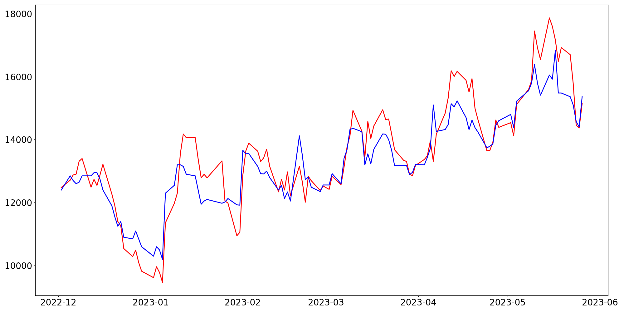 [ - : 실제값(종가) / - : 예측값(종가) ]