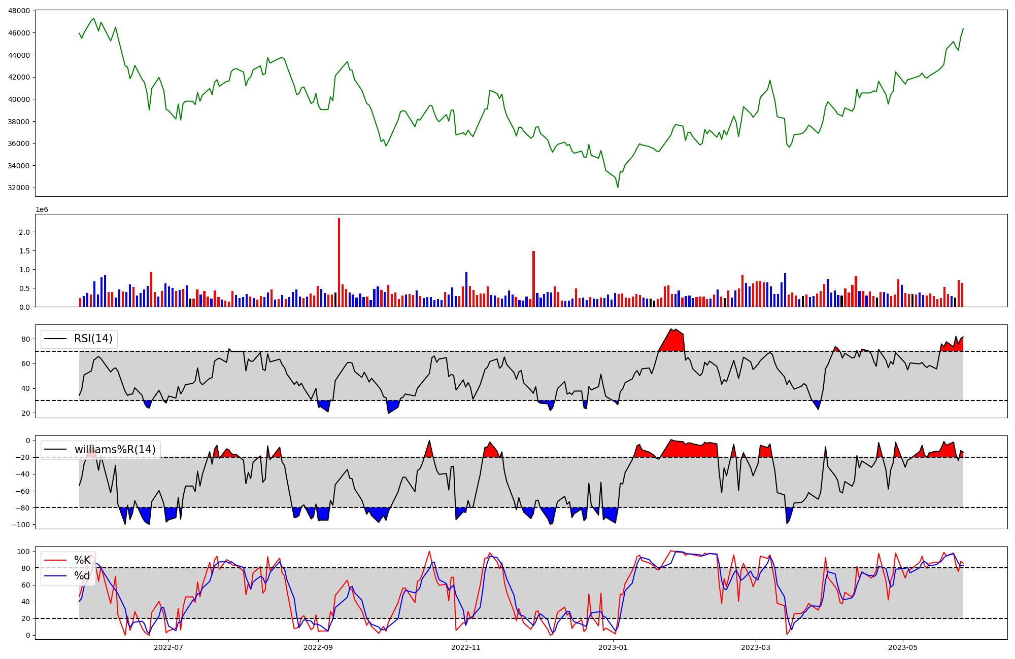 | RSI | Williams %R | stochastic(%K) | |