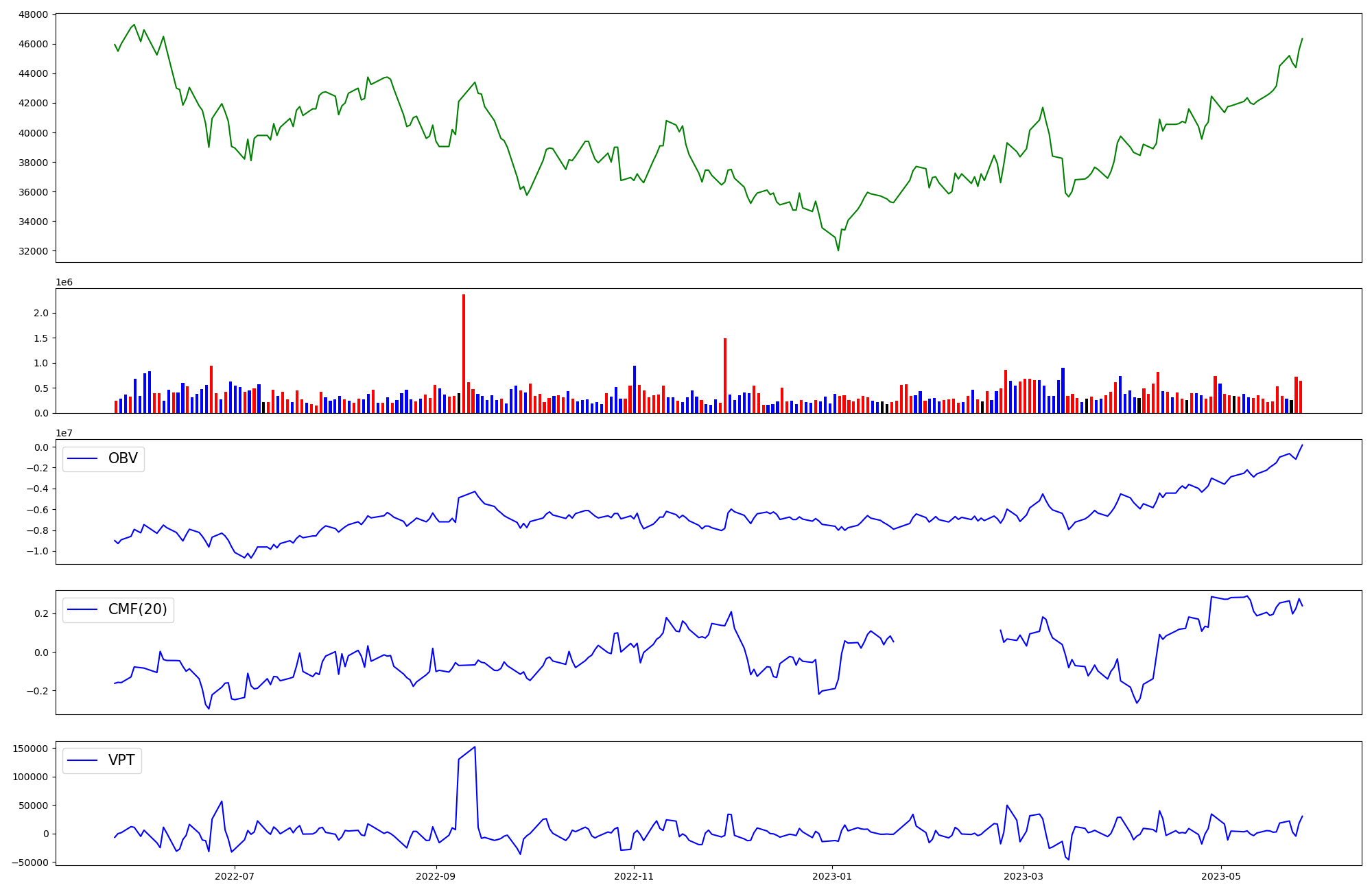 | OBV | CMF | VPT | |