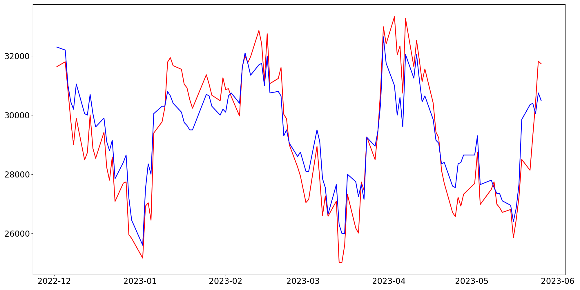 [ - : 실제값(종가) / - : 예측값(종가) ]