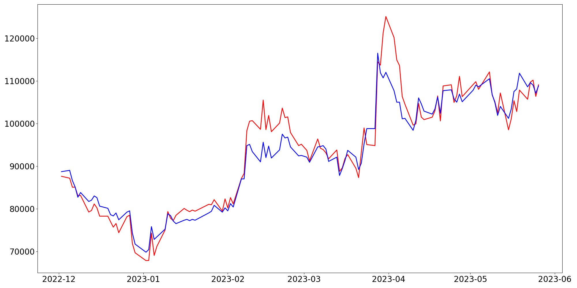 [ - : 실제값(종가) / - : 예측값(종가) ]
