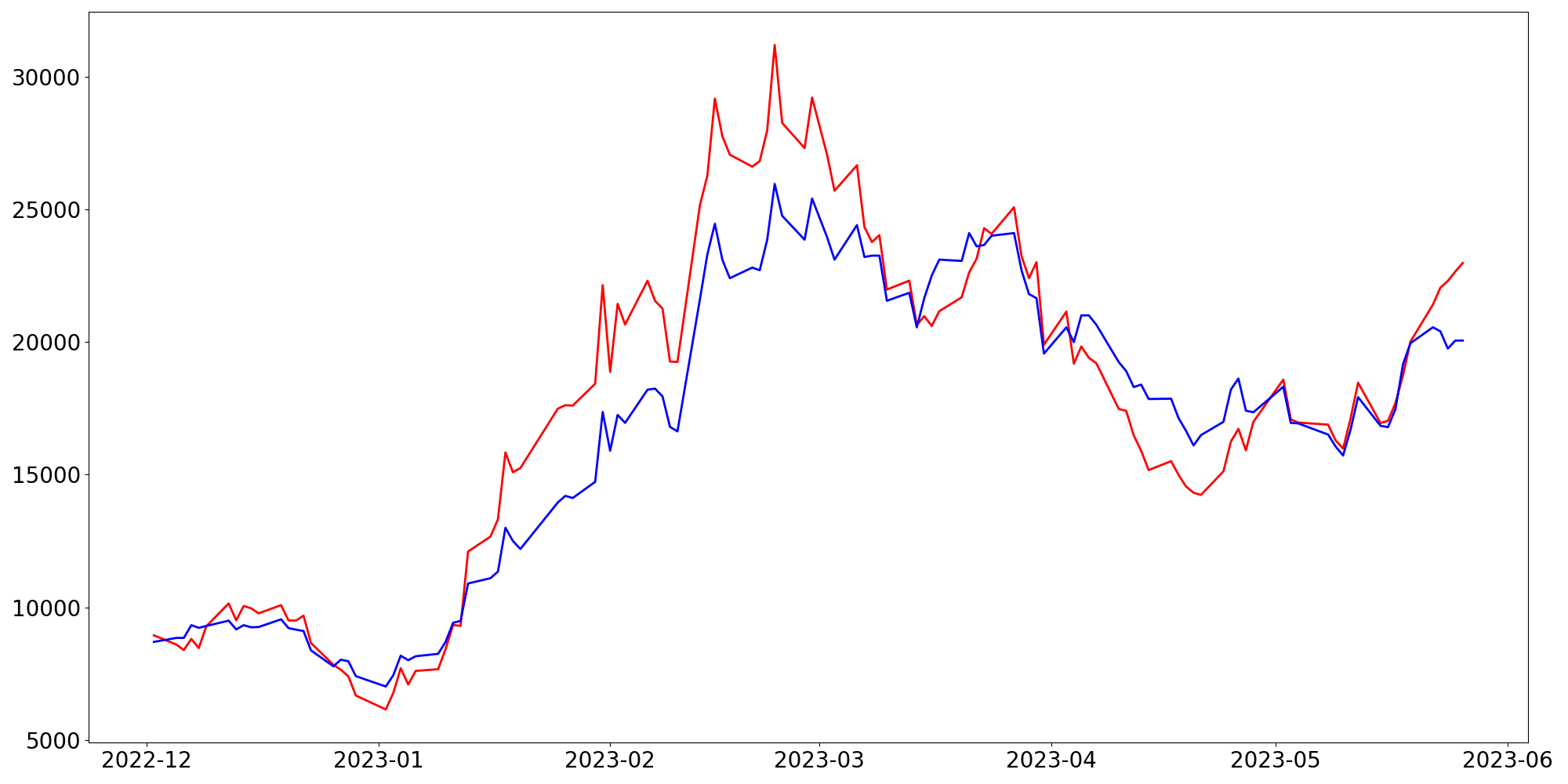 [ - : 실제값(종가) / - : 예측값(종가) ]