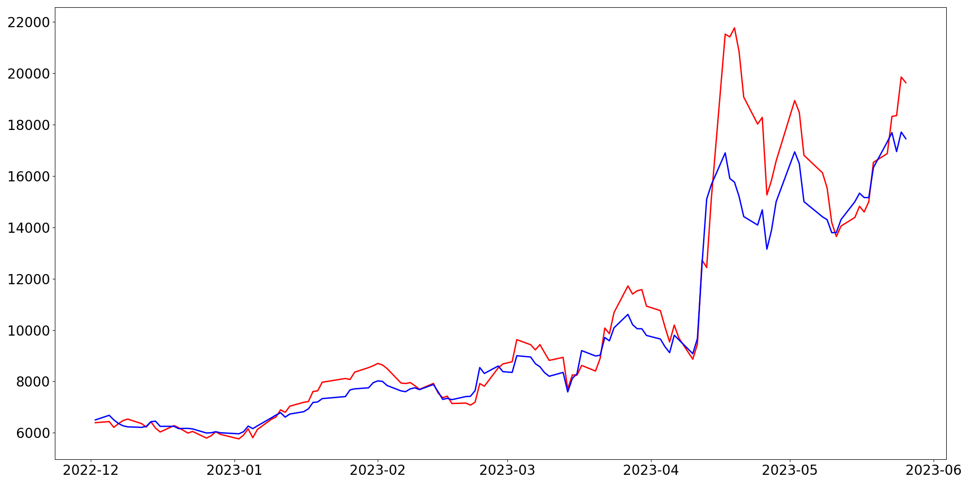[ - : 실제값(종가) / - : 예측값(종가) ]