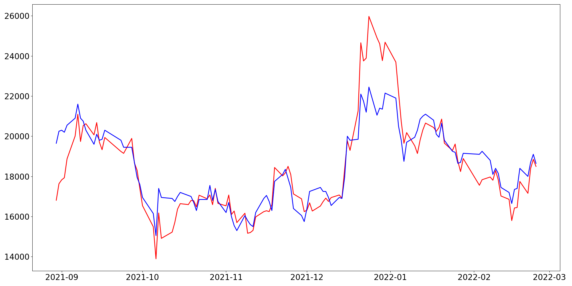 [ - : 실제값(종가) / - : 예측값(종가) ]