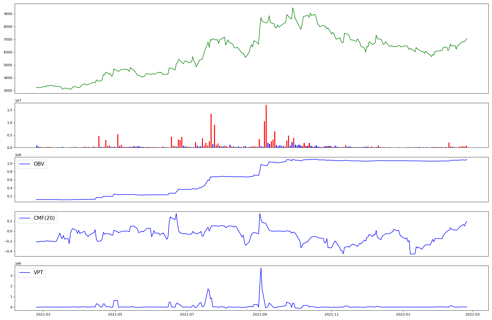 | OBV | CMF | VPT | |