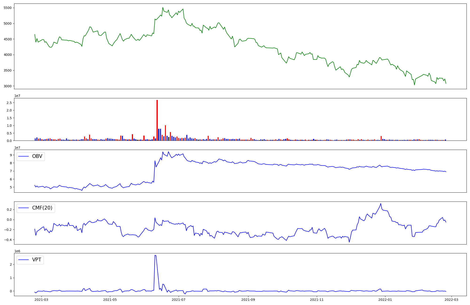 | OBV | CMF | VPT | |