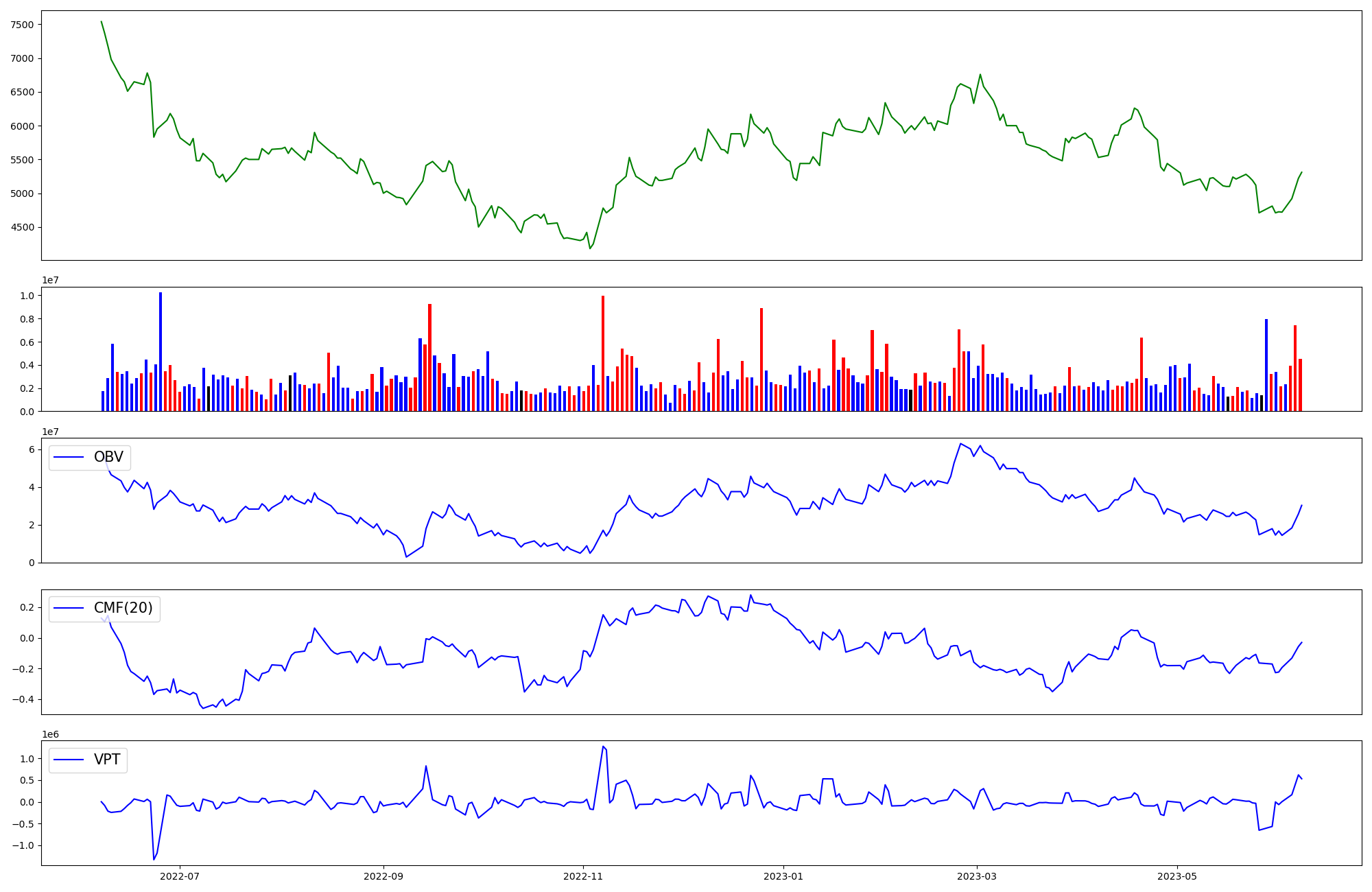 | OBV | CMF | VPT | |
