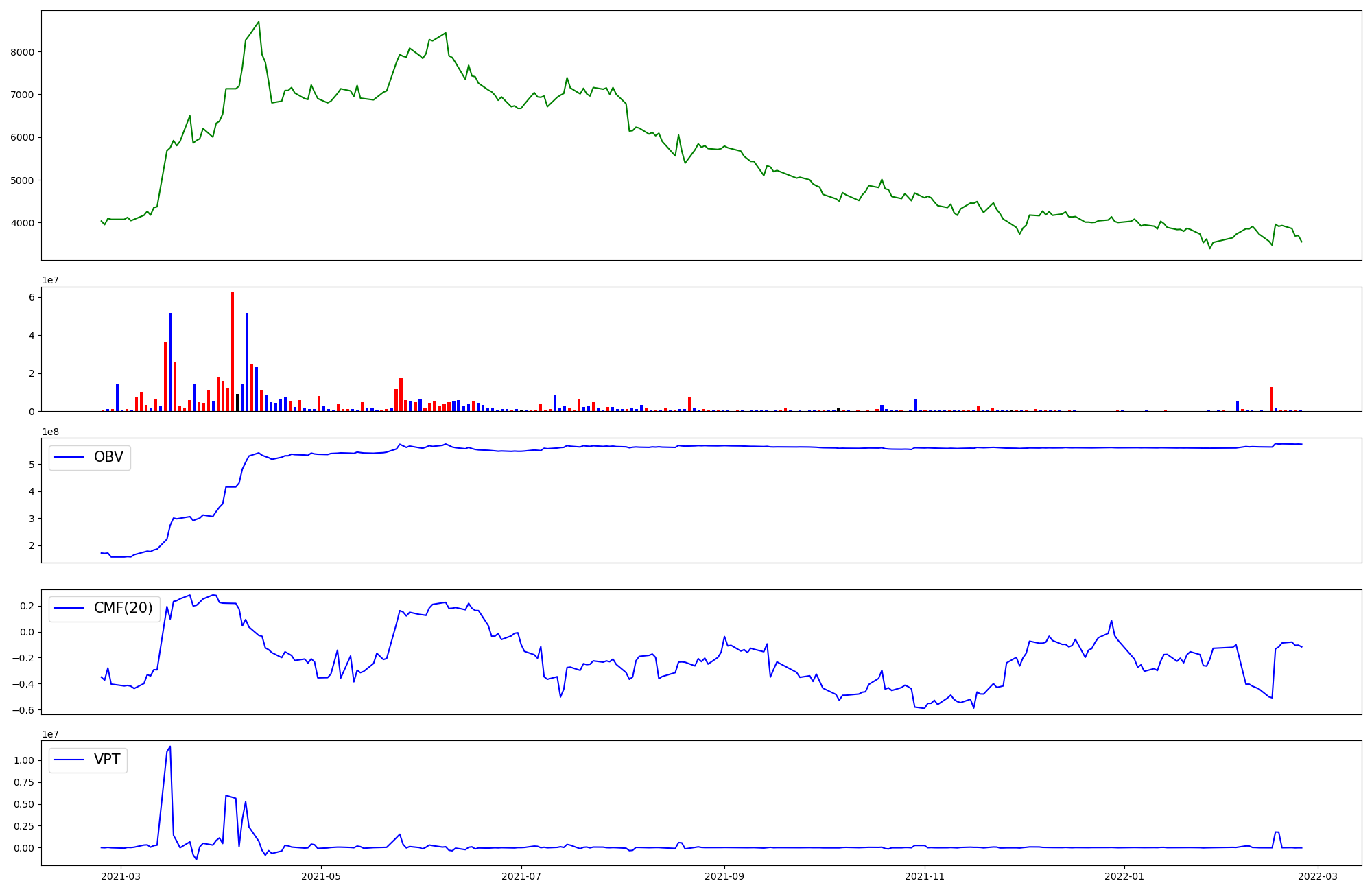 | OBV | CMF | VPT | |