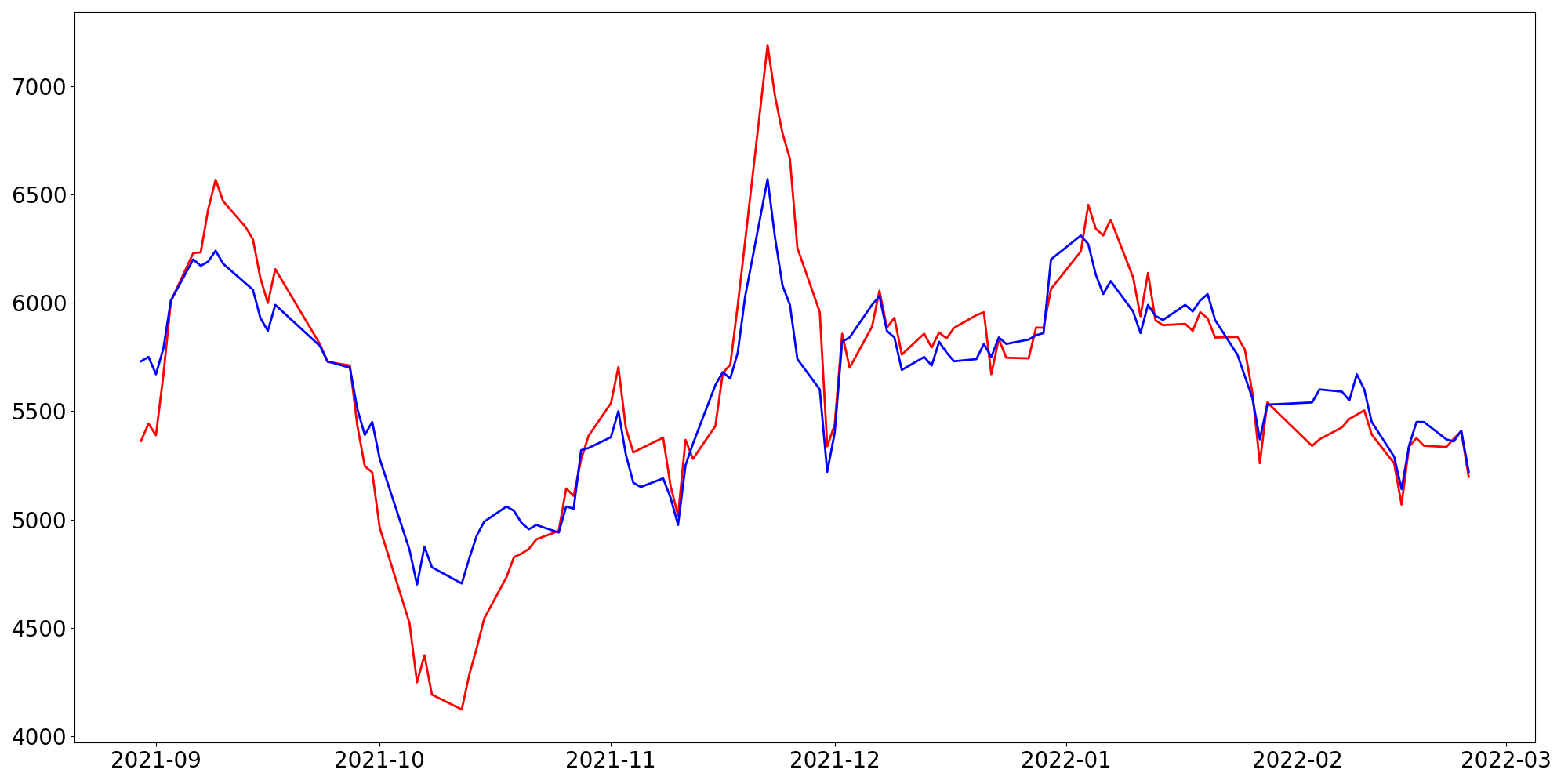 [ - : 실제값(종가) / - : 예측값(종가) ]