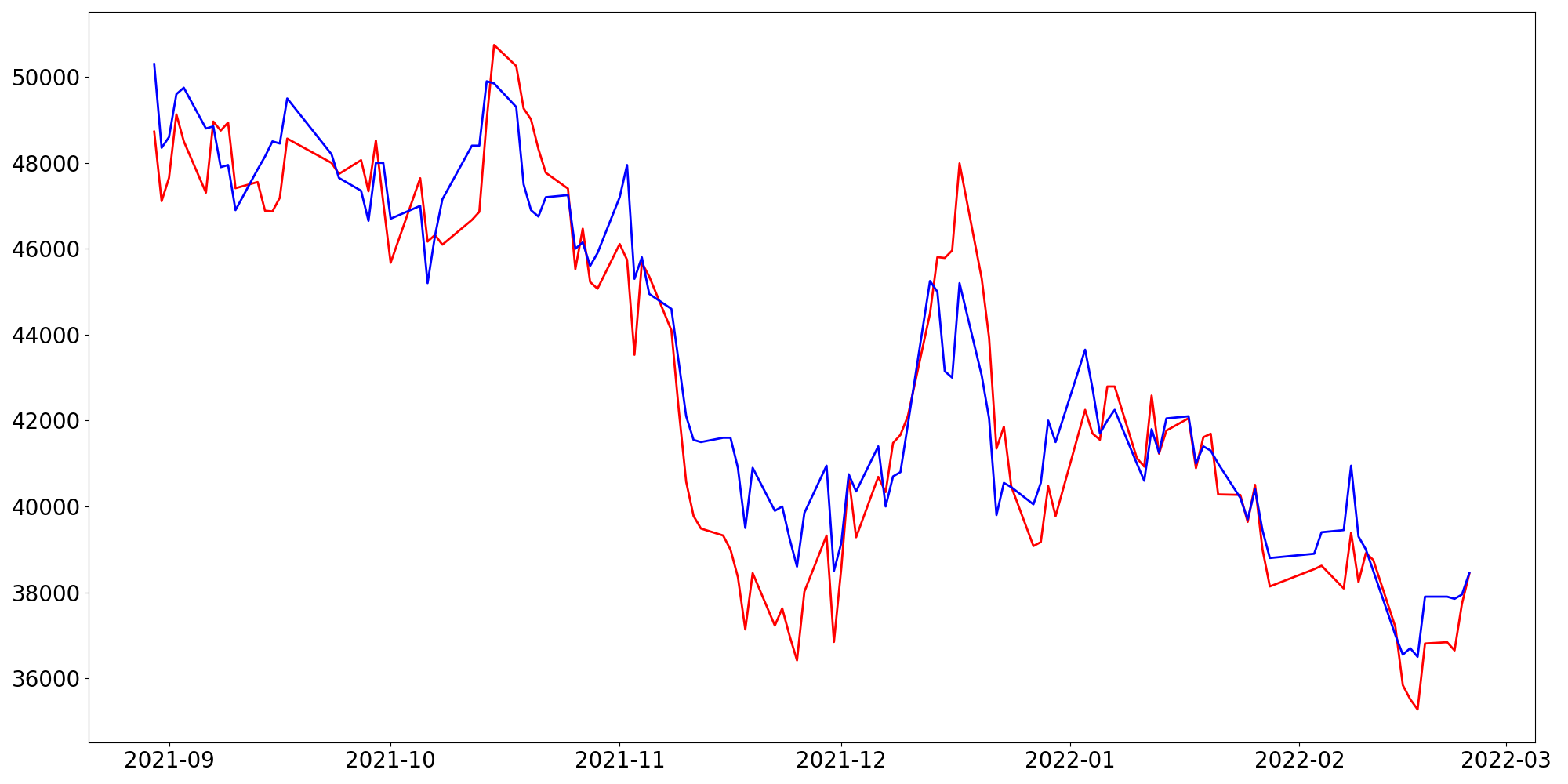 [ - : 실제값(종가) / - : 예측값(종가) ]