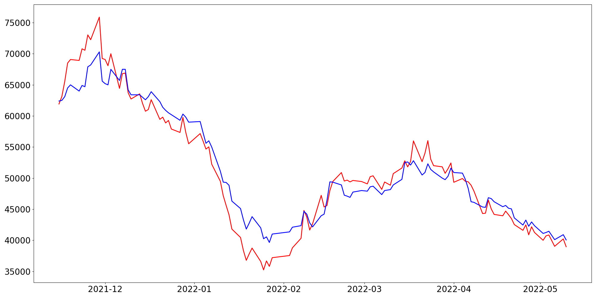 [ - : 실제값(종가) / - : 예측값(종가) ]