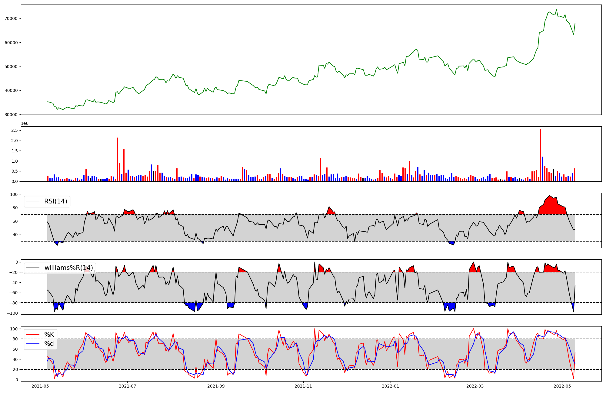 | RSI | Williams %R | stochastic(%K) | |