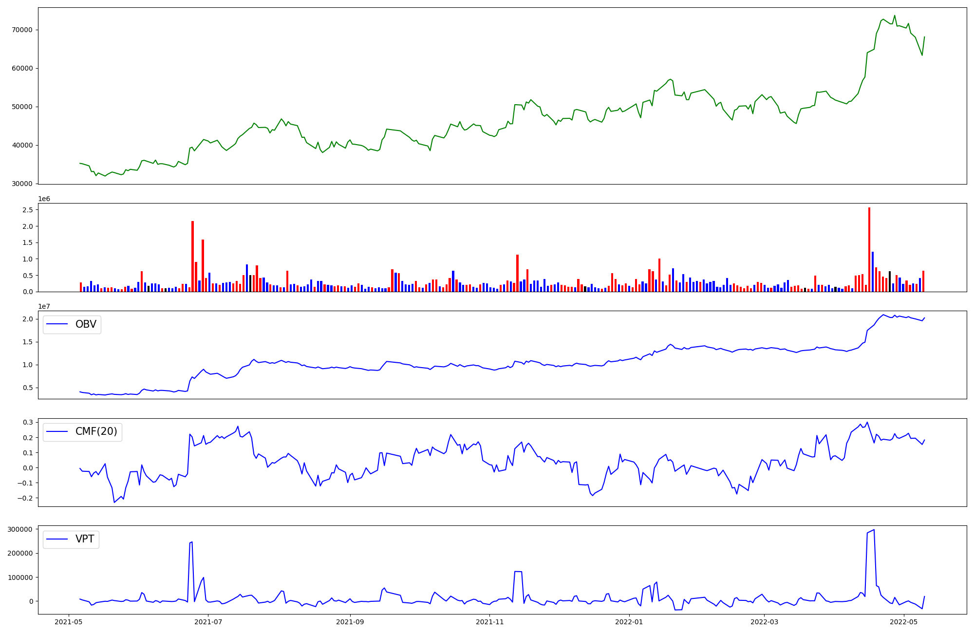 | OBV | CMF | VPT | |
