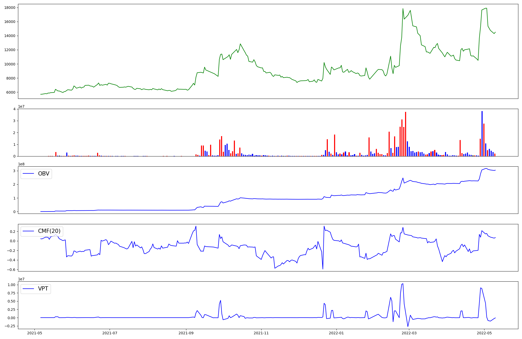 | OBV | CMF | VPT | |