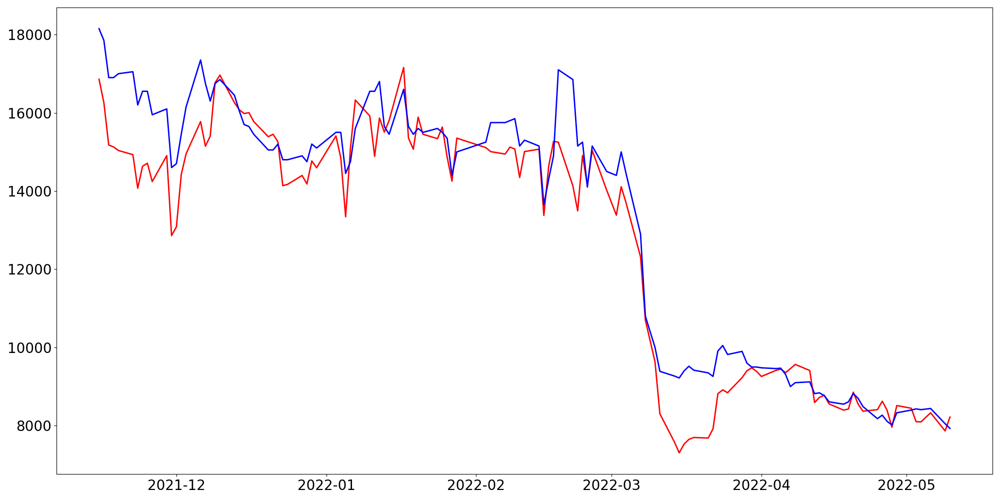 [ - : 실제값(종가) / - : 예측값(종가) ]