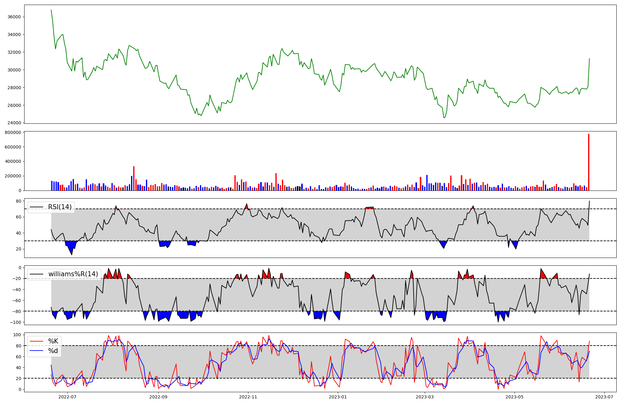 | RSI | Williams %R | stochastic(%K) | |