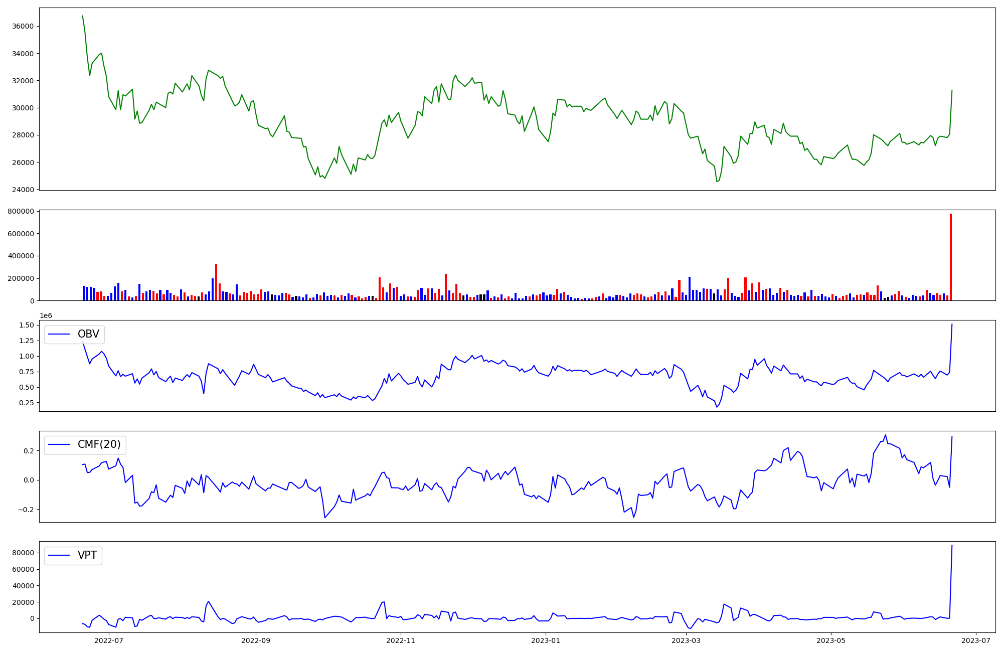 | OBV | CMF | VPT | |