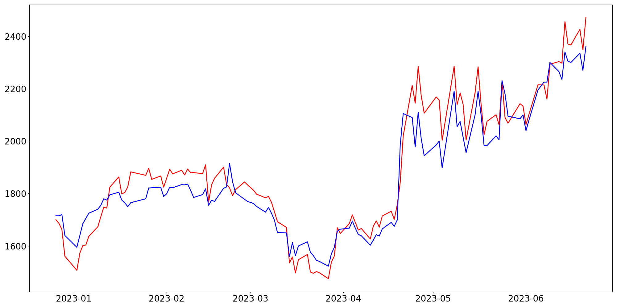 [ - : 실제값(종가) / - : 예측값(종가) ]