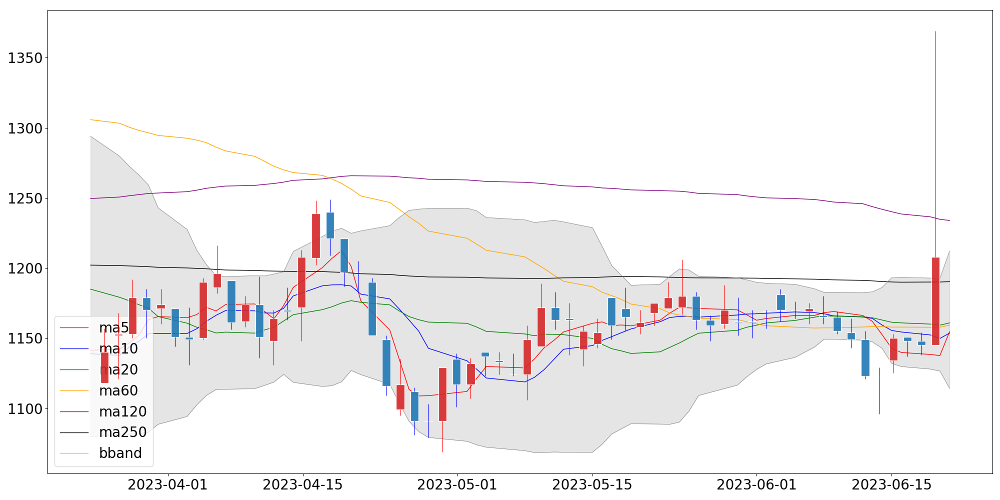 □ 오늘의 종가 : 1,208 (+63, +5.50%)
