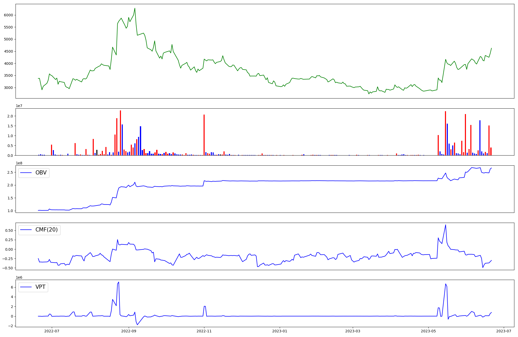 | OBV | CMF | VPT | |