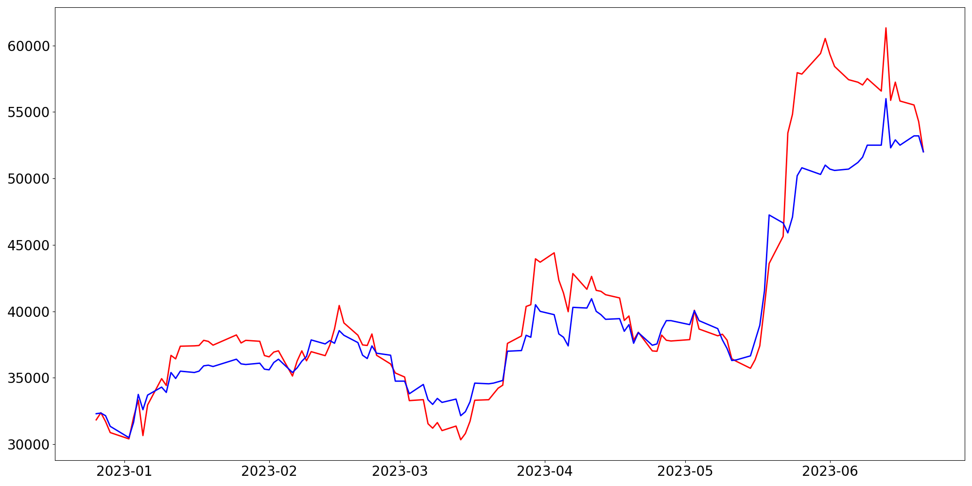 [ - : 실제값(종가) / - : 예측값(종가) ]