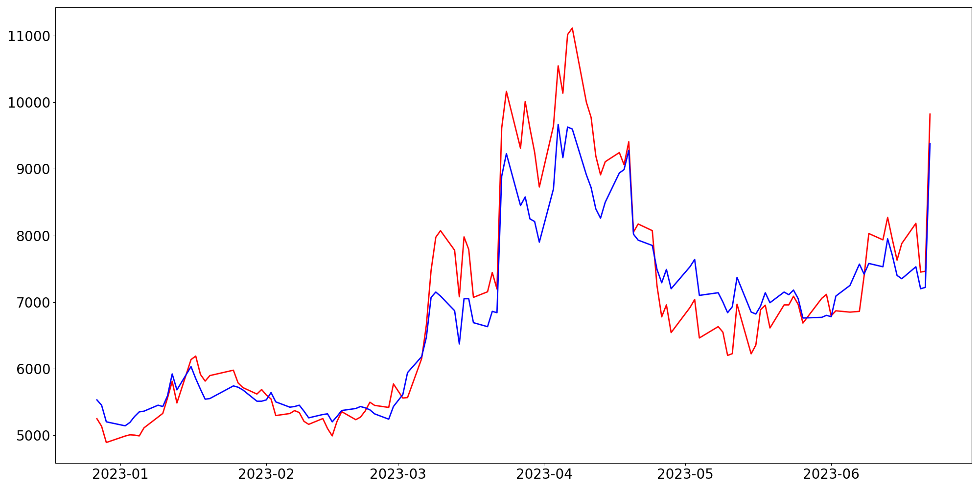 [ - : 실제값(종가) / - : 예측값(종가) ]