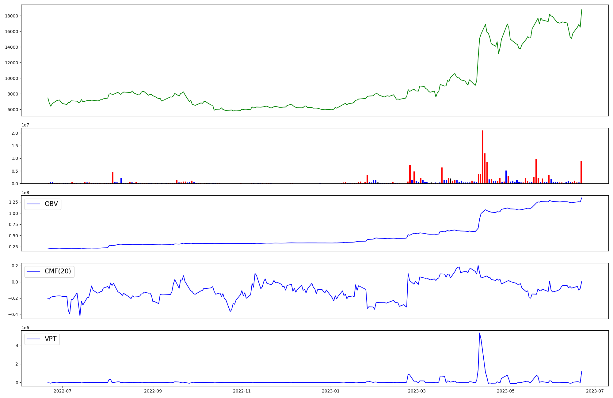 | OBV | CMF | VPT | |