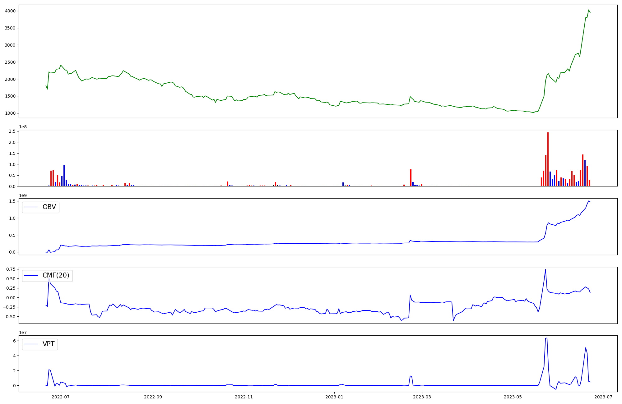 | OBV | CMF | VPT | |