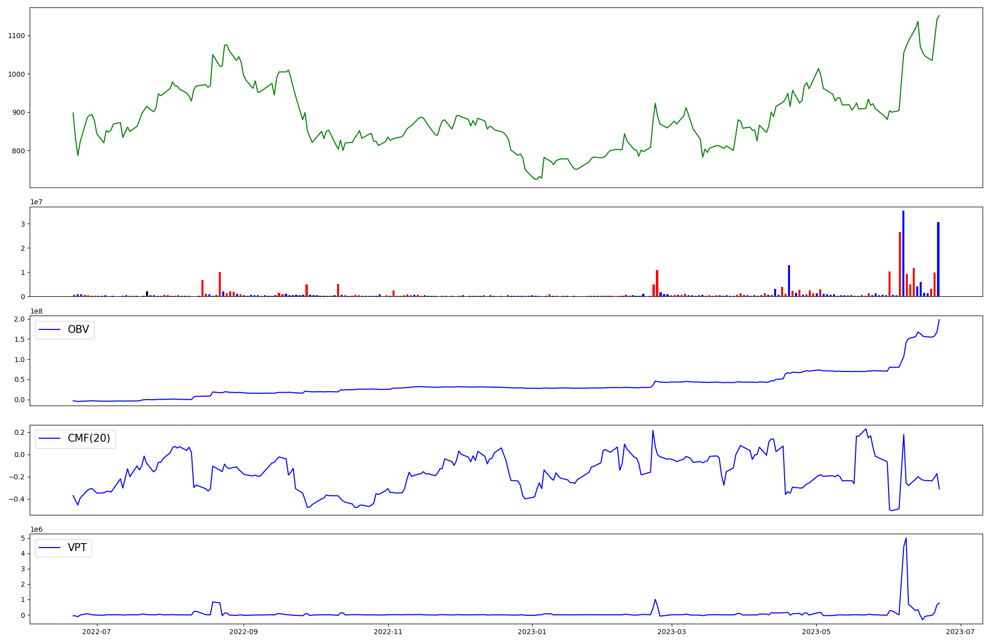 | OBV | CMF | VPT | |