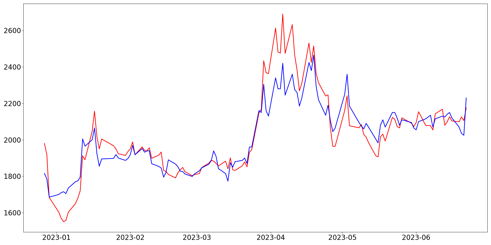 [ - : 실제값(종가) / - : 예측값(종가) ]