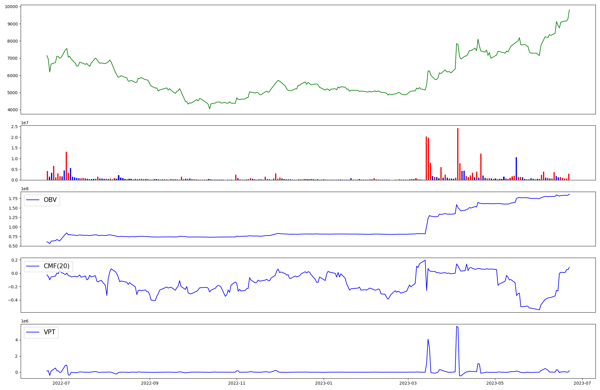 | OBV | CMF | VPT | |