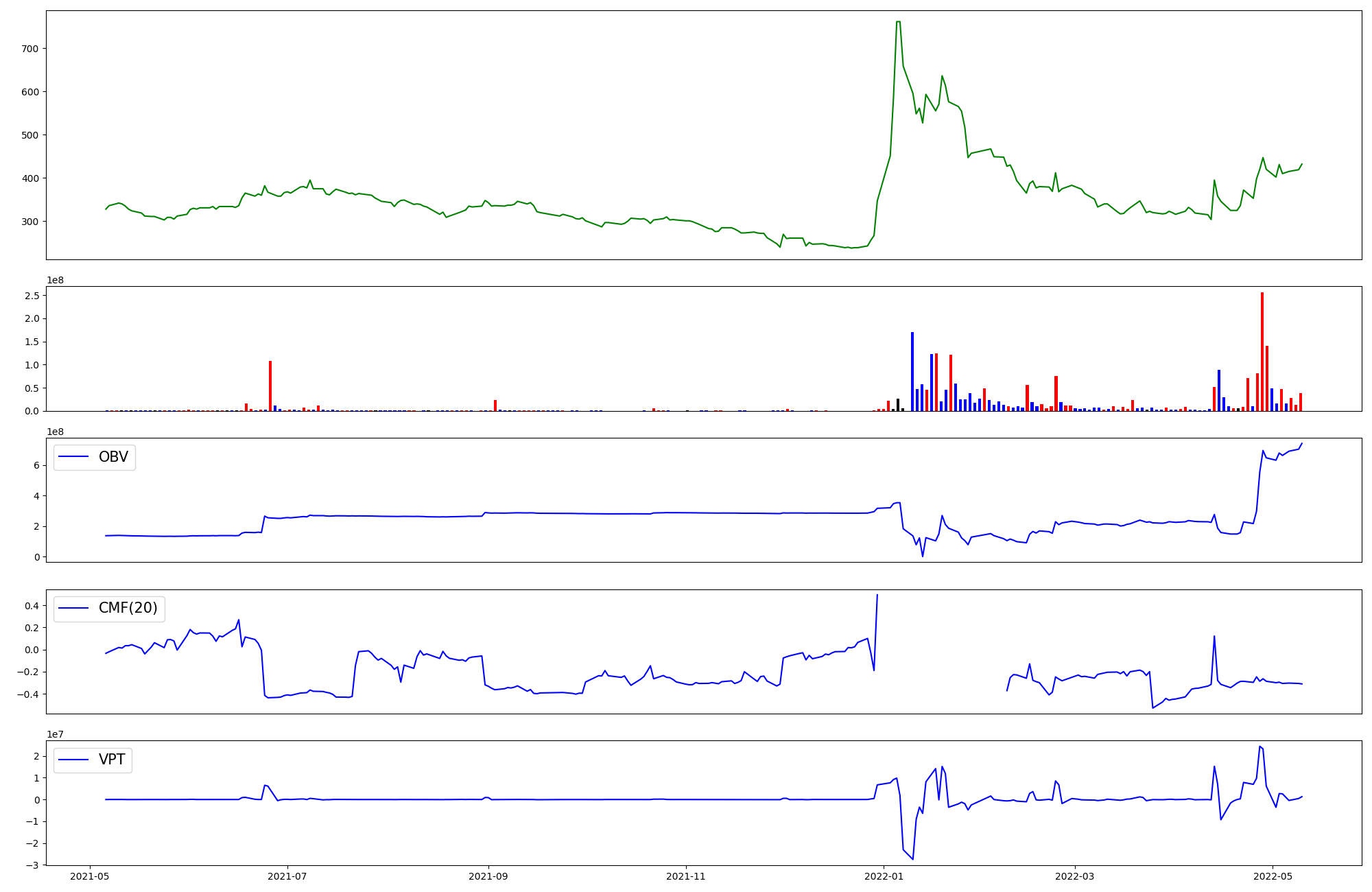 | OBV | CMF | VPT | |