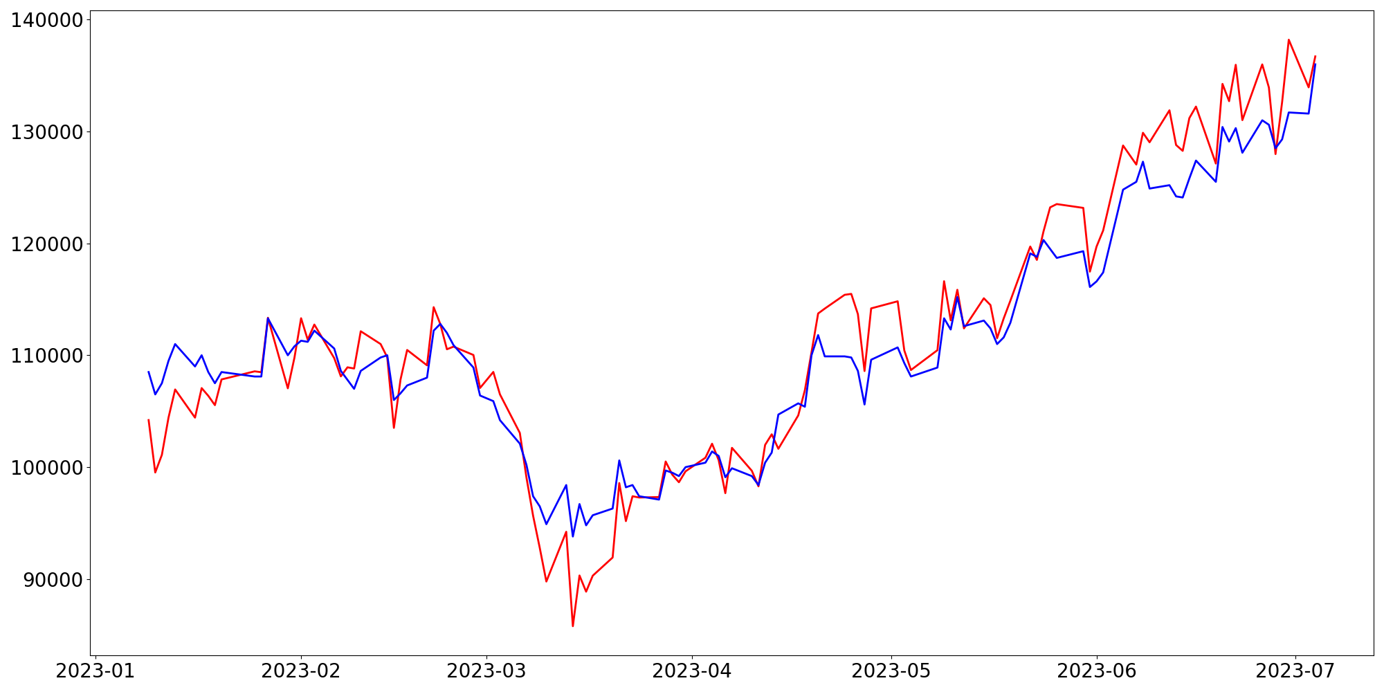 [ - : 실제값(종가) / - : 예측값(종가) ]
