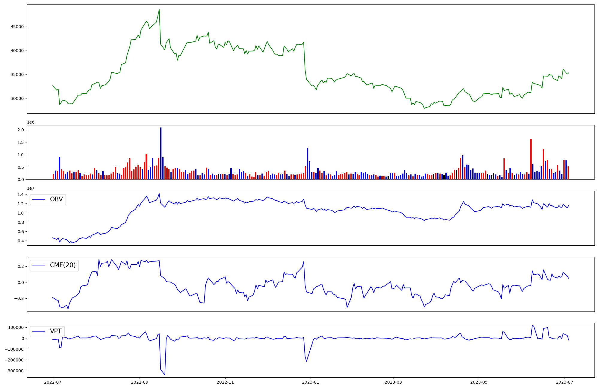 | OBV | CMF | VPT | |