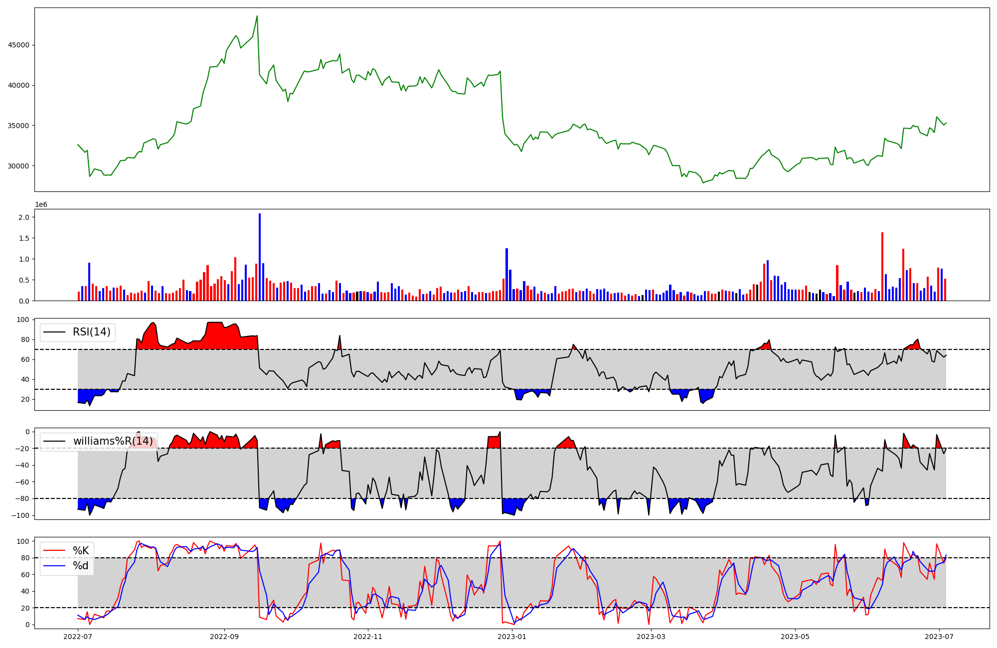 | RSI | Williams %R | stochastic(%K) | |