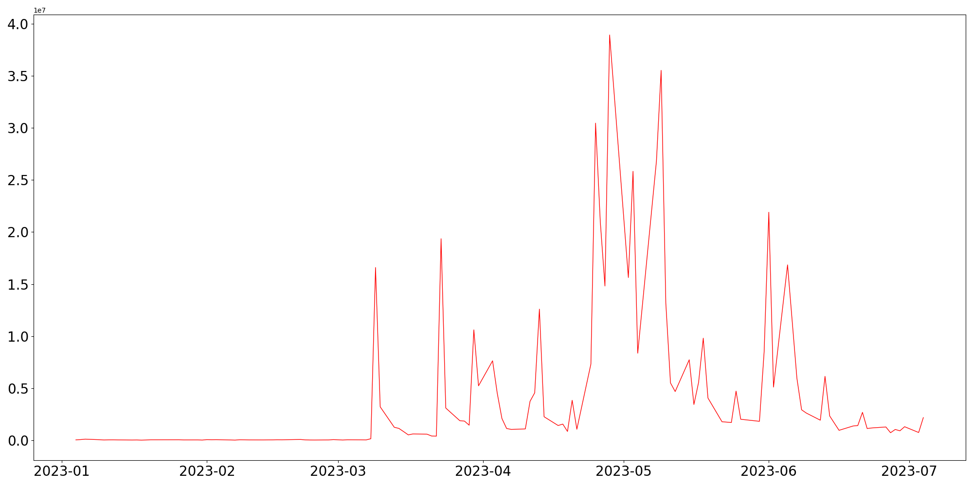 일별 공매도 거래량 추이를 그래프로 나타낸 것으로 공매도 거래량이 증가할 수록 단기적으로 가격 하락을 예측하는 시장참가자가 증거하는 것으로 판단해 볼 수 있습니다.