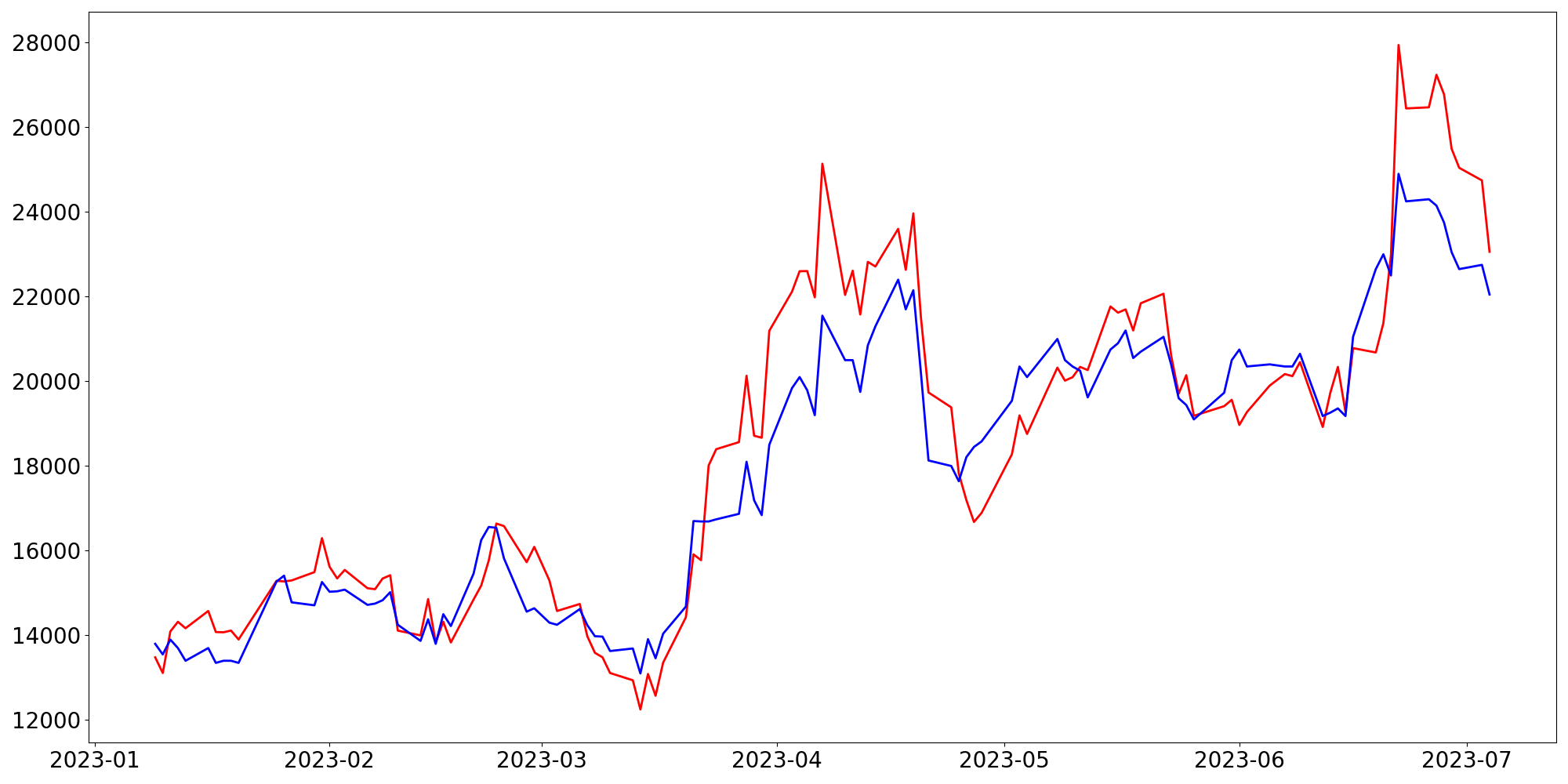 [ - : 실제값(종가) / - : 예측값(종가) ]