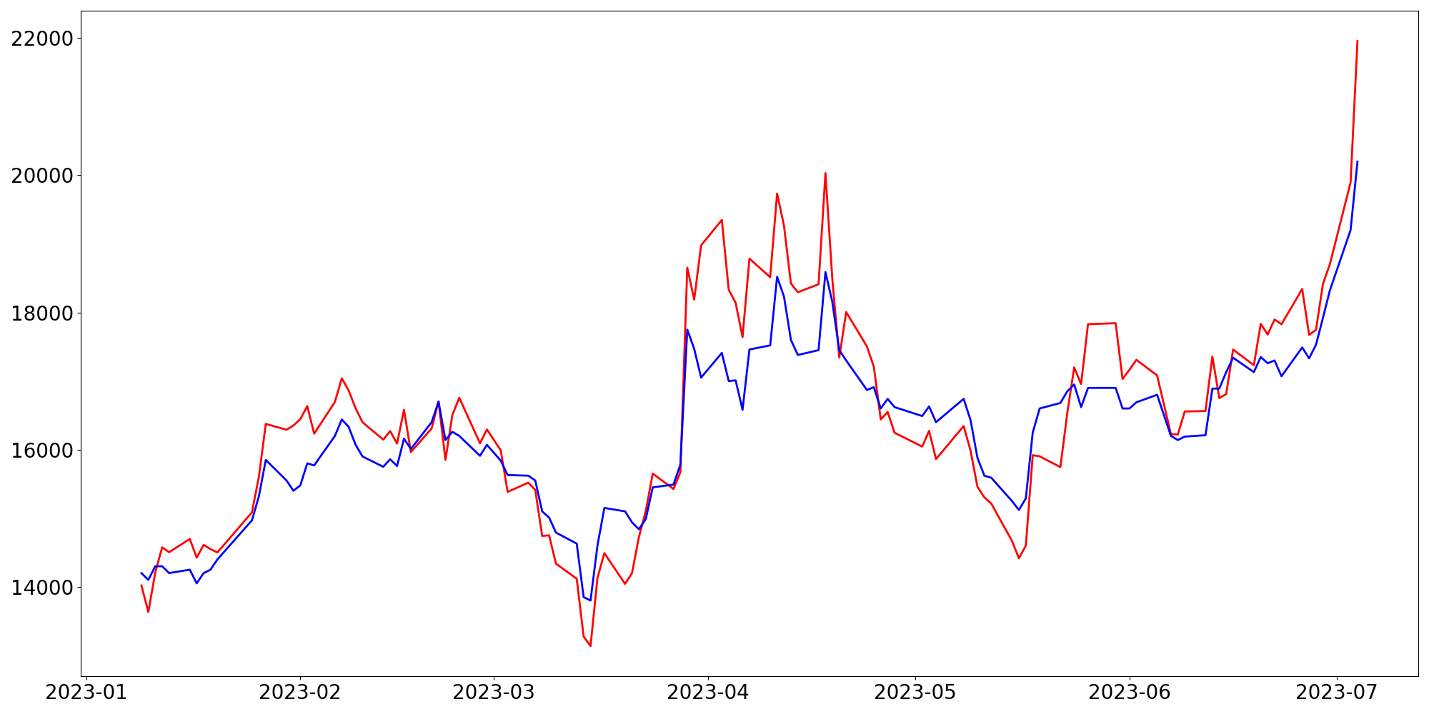 [ - : 실제값(종가) / - : 예측값(종가) ]