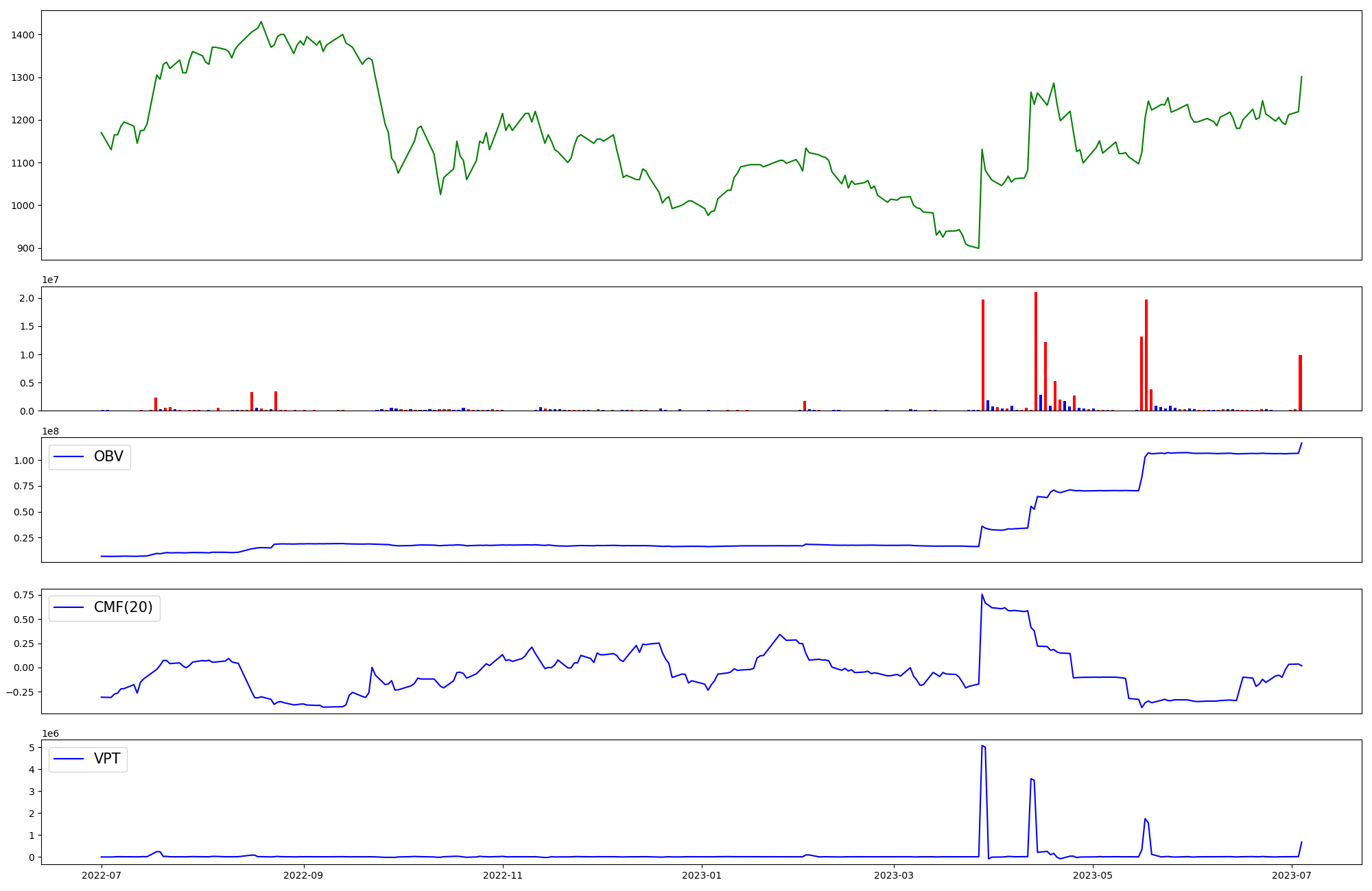 | OBV | CMF | VPT | |