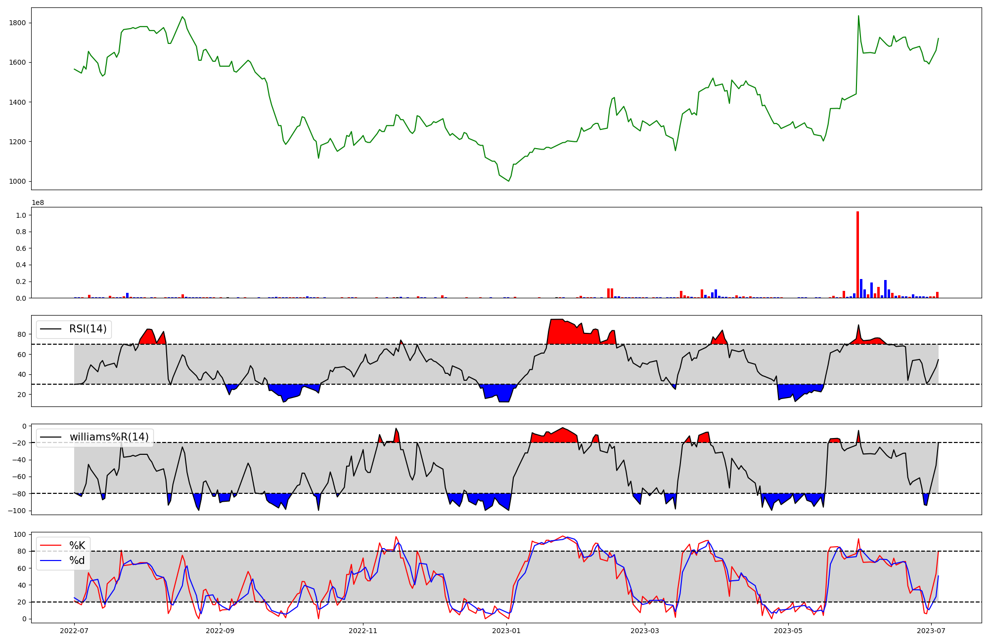 | RSI | Williams %R | stochastic(%K) | |