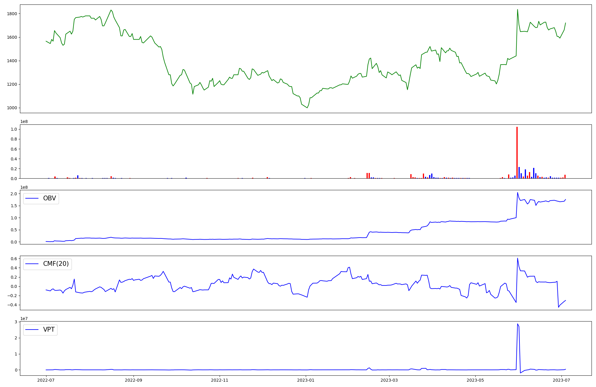 | OBV | CMF | VPT | |
