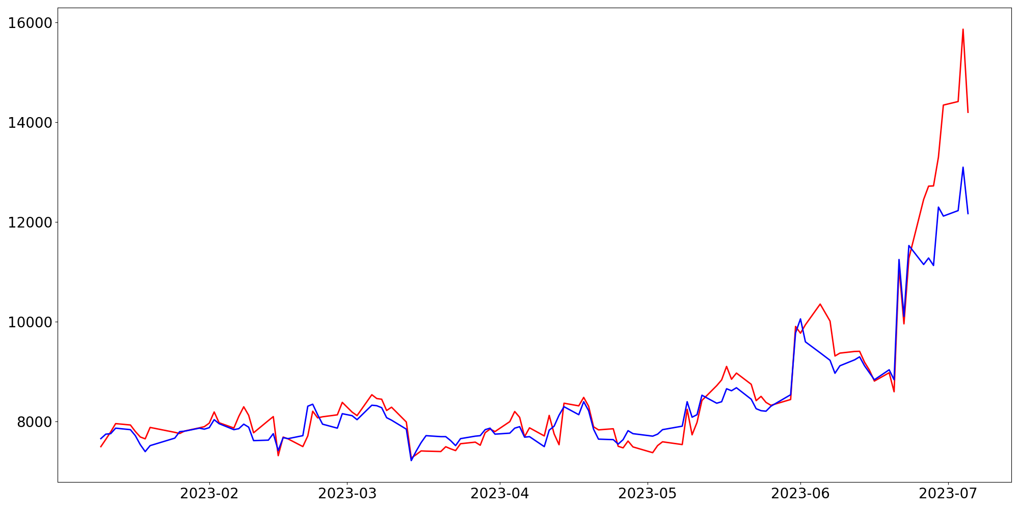 [ - : 실제값(종가) / - : 예측값(종가) ]