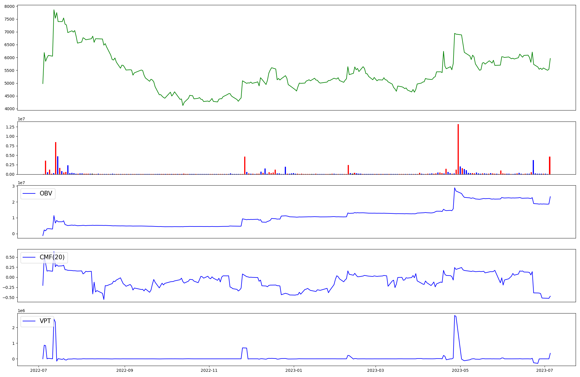| OBV | CMF | VPT | |