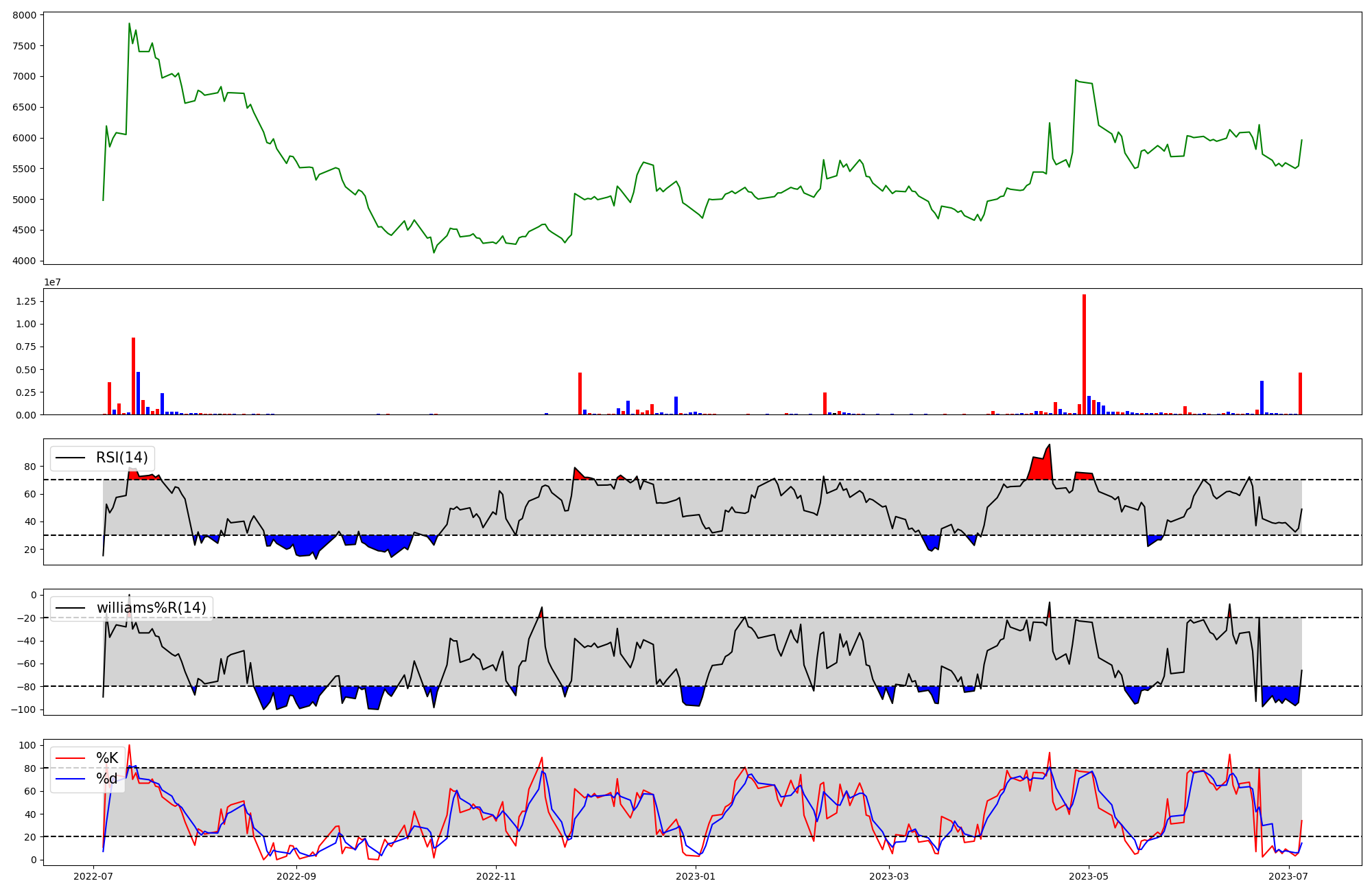 | RSI | Williams %R | stochastic(%K) | |