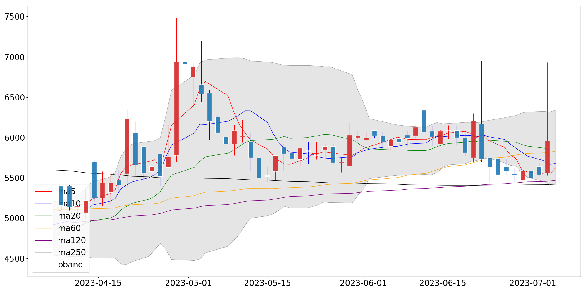 | 단순이동평균 | 5,832.00 | 5,468.75 | 5,423.60 |