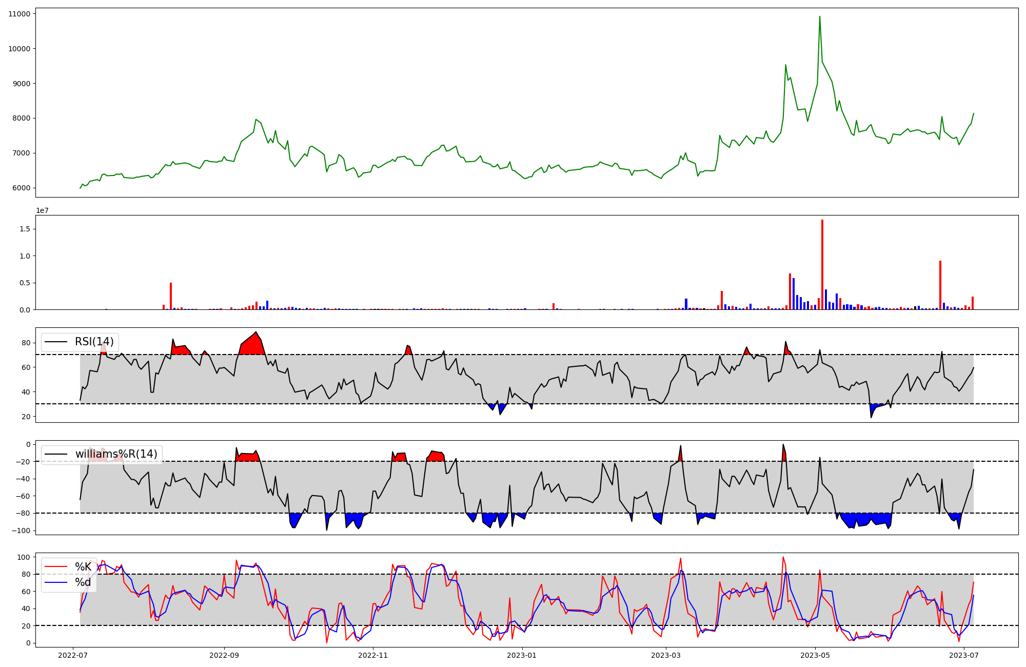 | RSI | Williams %R | stochastic(%K) | |
