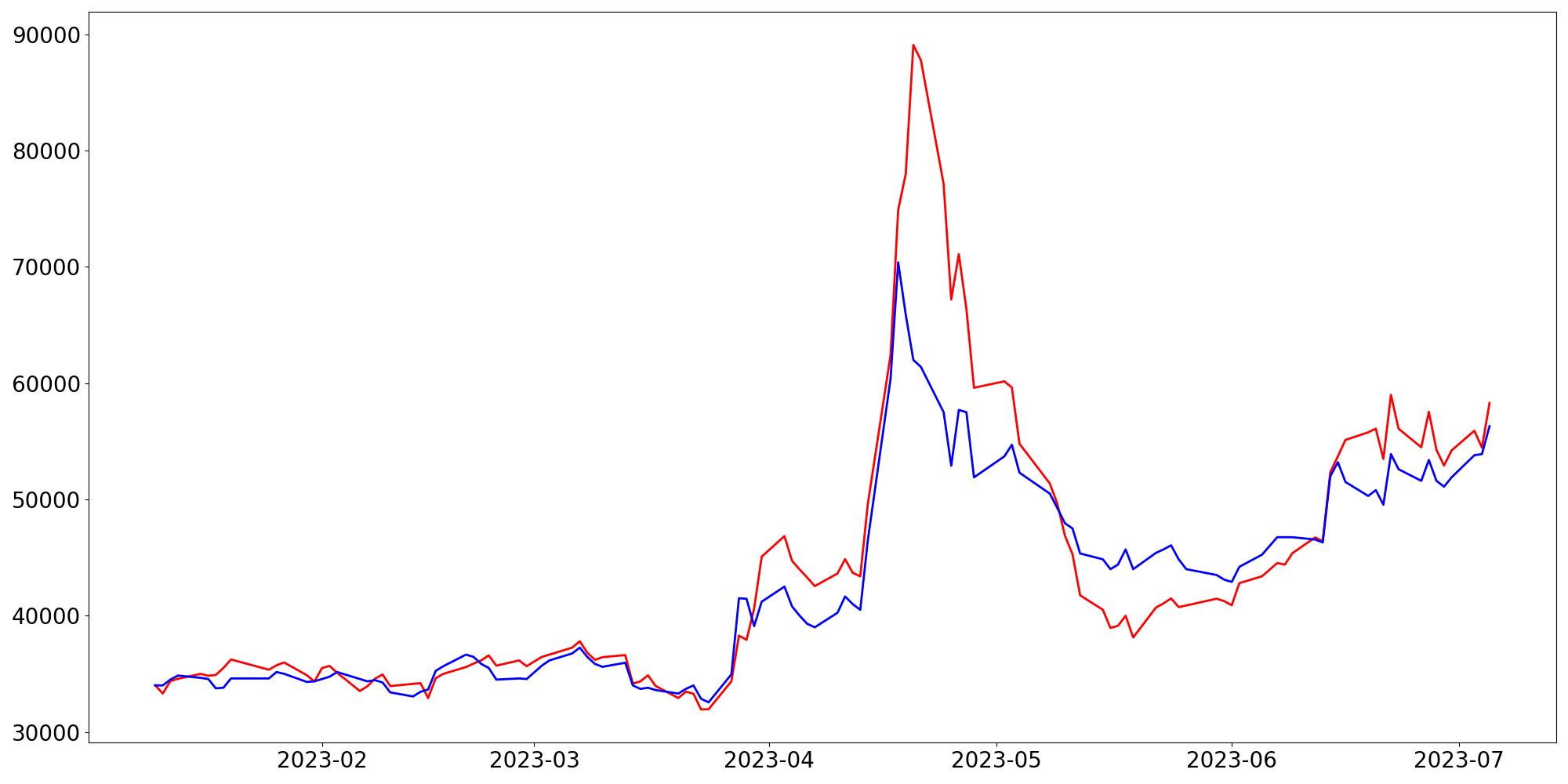 [ - : 실제값(종가) / - : 예측값(종가) ]