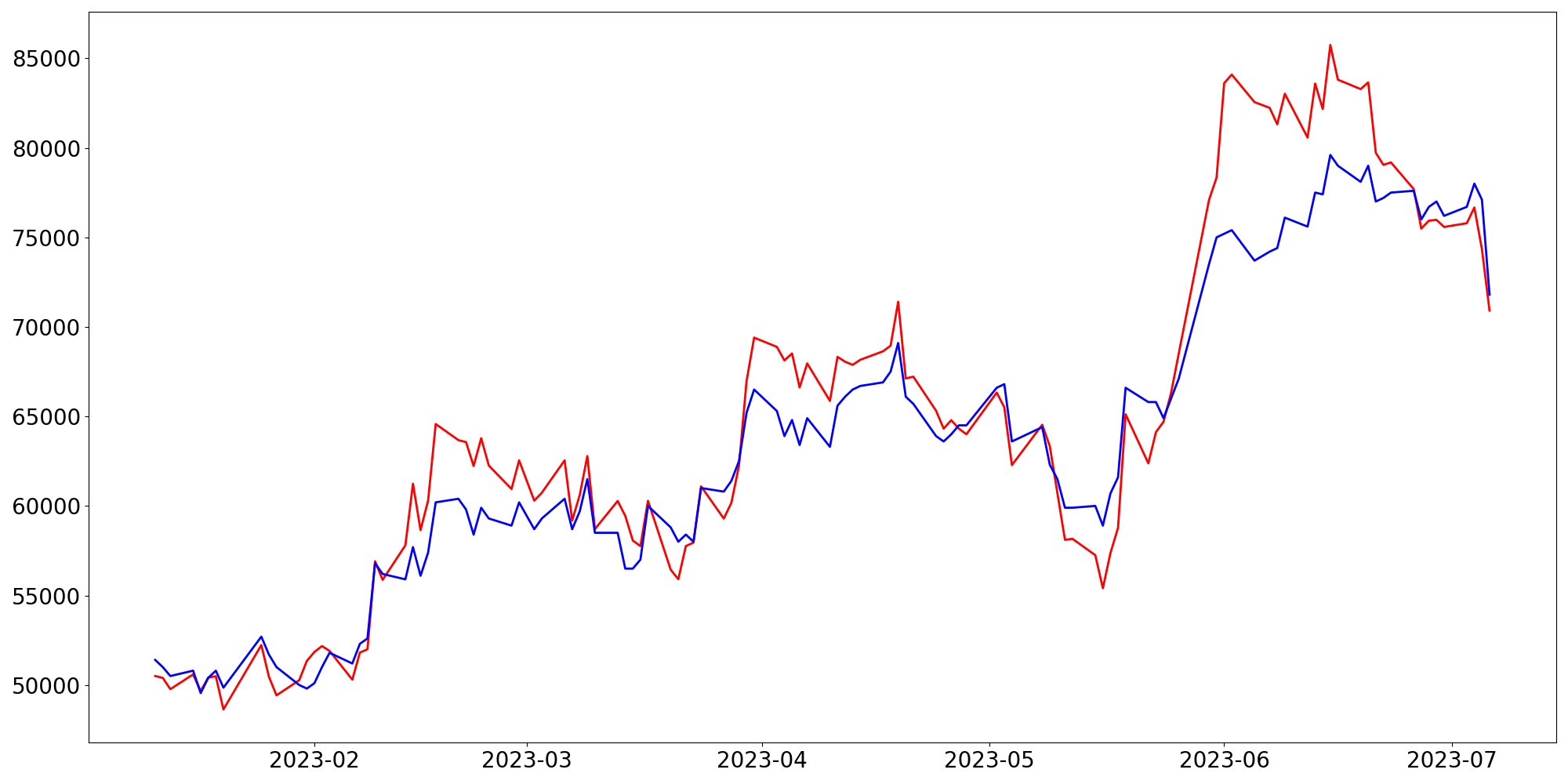 [ - : 실제값(종가) / - : 예측값(종가) ]