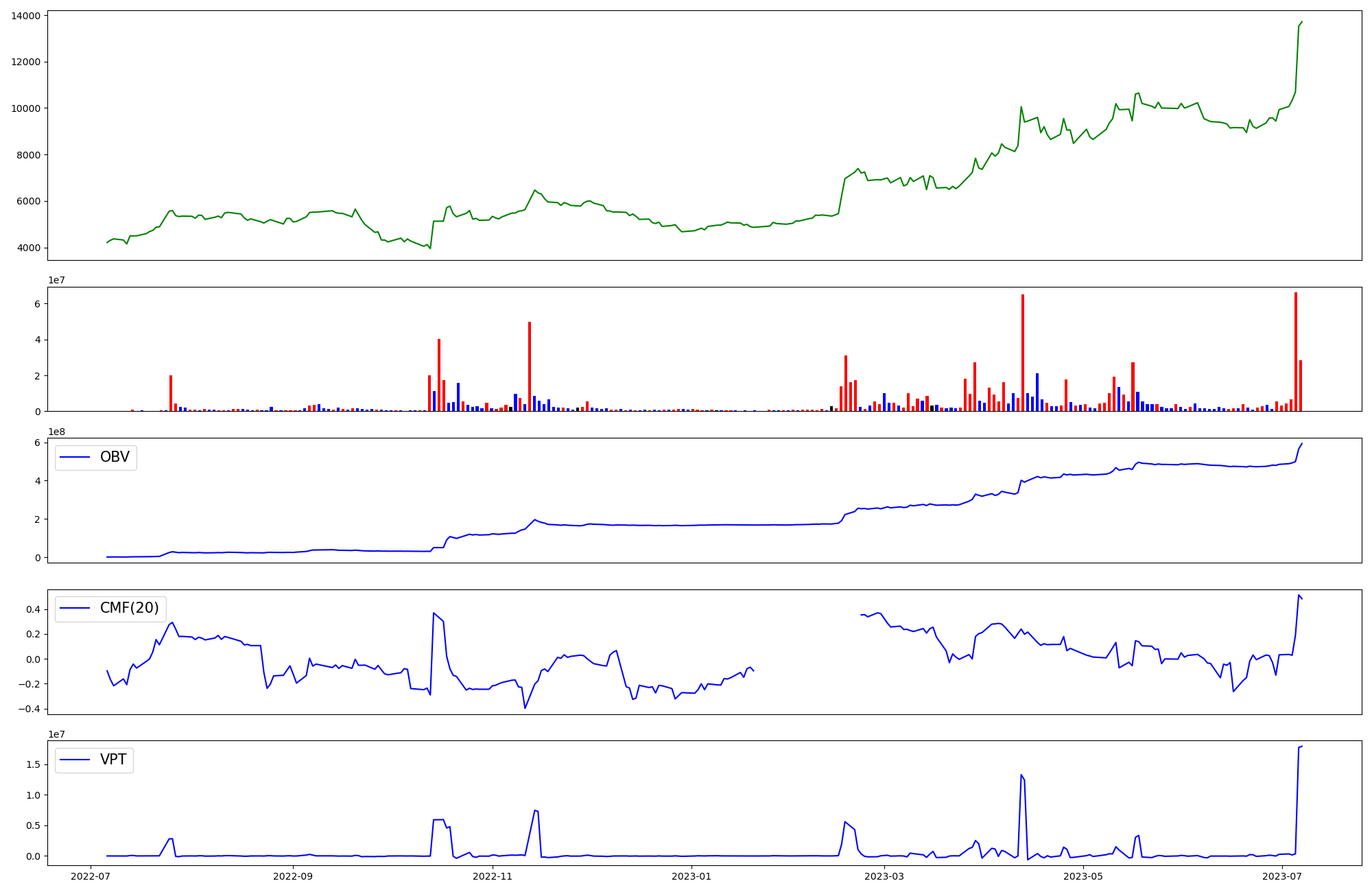 | OBV | CMF | VPT | |